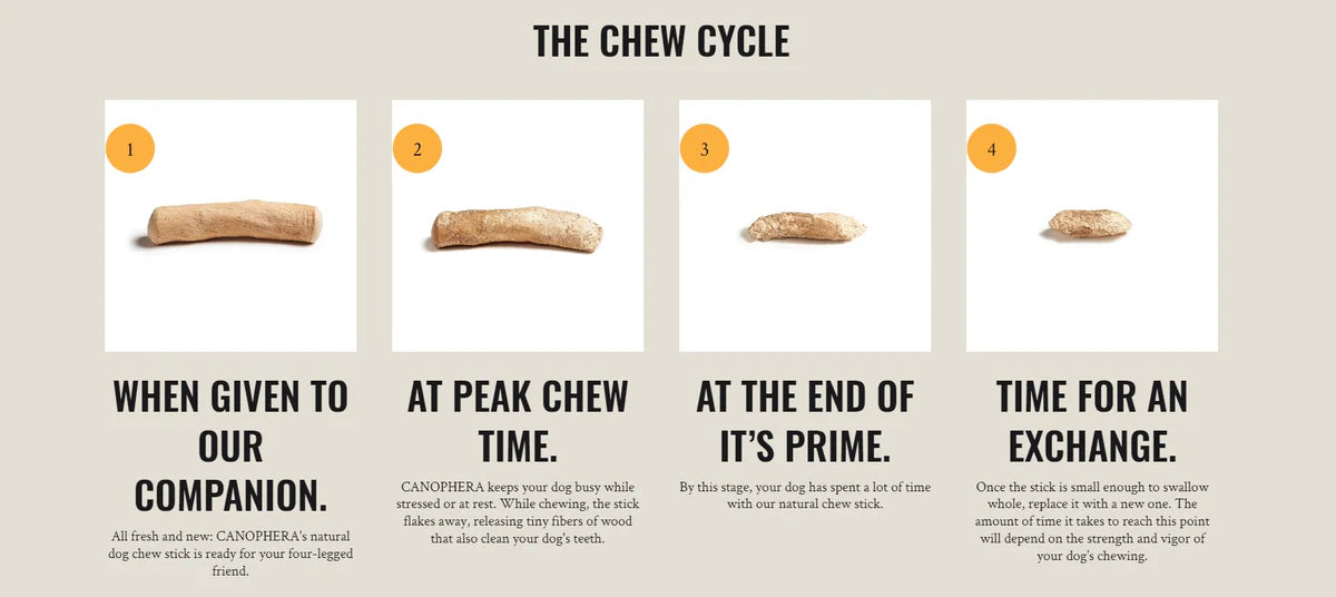 To ensure there is a chew for all dogs, our sticks come in several sizes. CANOPHERA sticks come in Extra Small through Extra Large and are suitable for adult dogs and puppies 6 months and up.