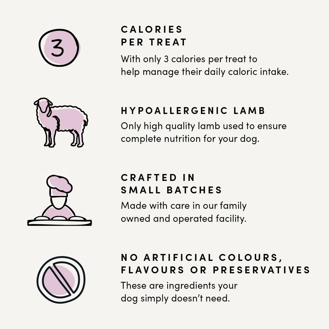 NEW! Each soft and chewy treat contains all natural ingredients starting with Lamb making it the perfect high protein snack for dogs of all ages and sizes. Lamb is an alternative protein ideal for dogs with specific allergies or food sensitivities.