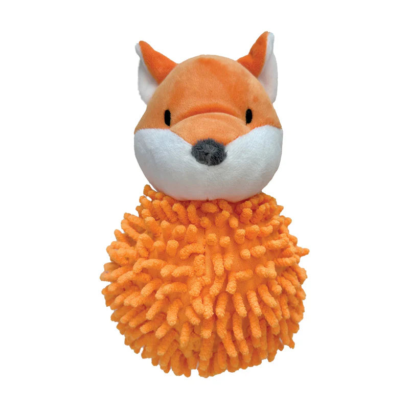 These 2-in-1 toys are sure to be a hit! Each toy is made with a fun mop-like fabric. The heads are fabricated with a very soft plush with embroidered features. After the outer mop casing is chewed, a spiky TPR ball is hidden inside waiting to be revealed! The spiky TPR ball features a built-in squeaker. The textured spikes clean teeth and massage gums as dogs chew. Ideal for breeds of all sizes.