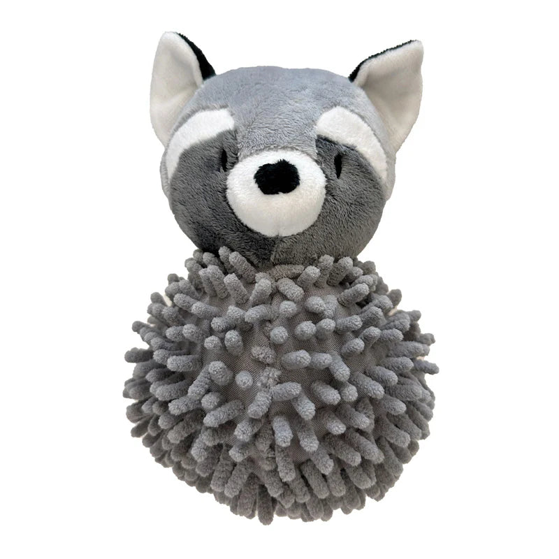 These 2-in-1 toys are sure to be a hit! Each toy is made with a fun mop-like fabric. The heads are fabricated with a very soft plush with embroidered features. After the outer mop casing is chewed, a spiky TPR ball is hidden inside waiting to be revealed! The spiky TPR ball features a built-in squeaker. The textured spikes clean teeth and massage gums as dogs chew. Ideal for breeds of all sizes.