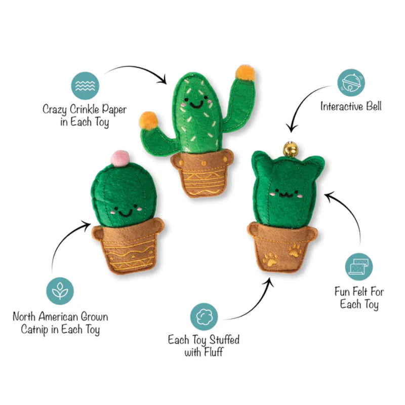 Petshop by Fringe Studio “Cat-us Friends” mini toy set is purrfect for the busy kitty. Made with fun felt, crazy crinkle paper, an interactive bell and North American grown catnip, these toys were designed with interactive play in mind. Great for cats of all sizes.