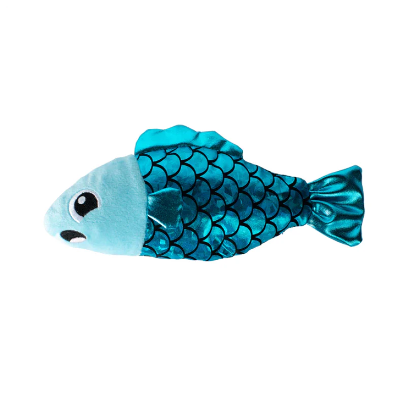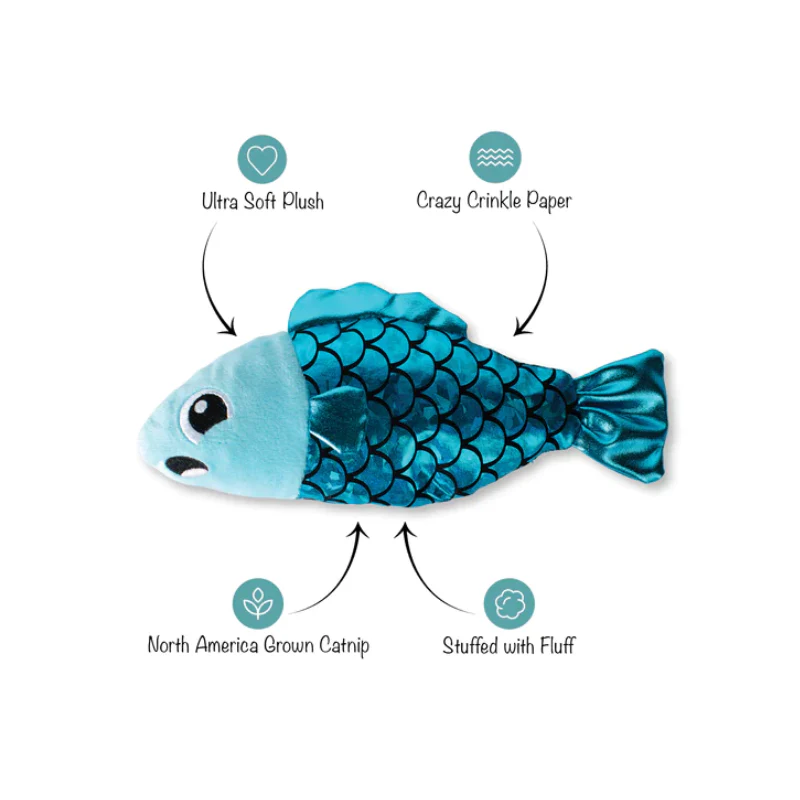 Petshop by Fringe Studio “A Little Fishy” kicker cat toy is purrfect for the playful kitty. Made with a reflective plush, crazy crinkle paper, and North American grown catnip, this toy was designed with interactive play in mind.