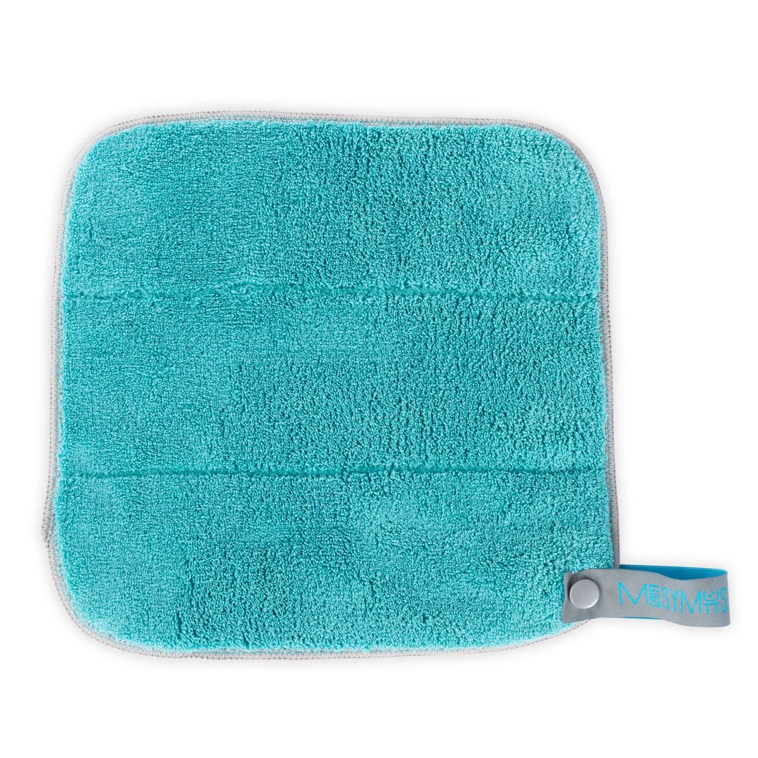 - The mini travel towel is 10" x 10" and is machine washable. Hang to dry and avoid fabric softeners to prolong performance.